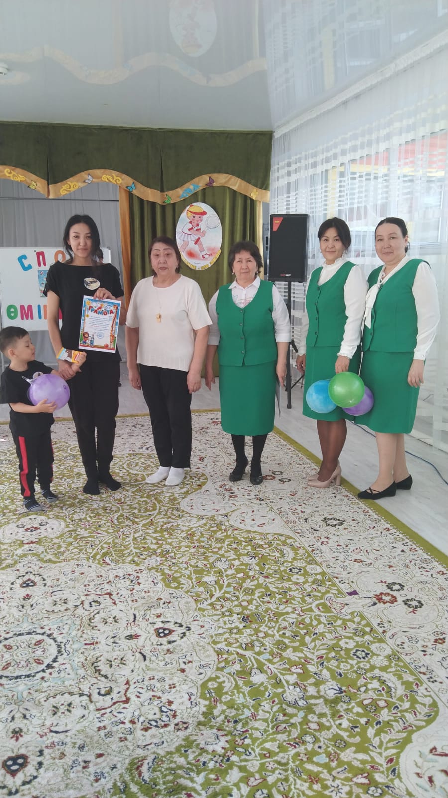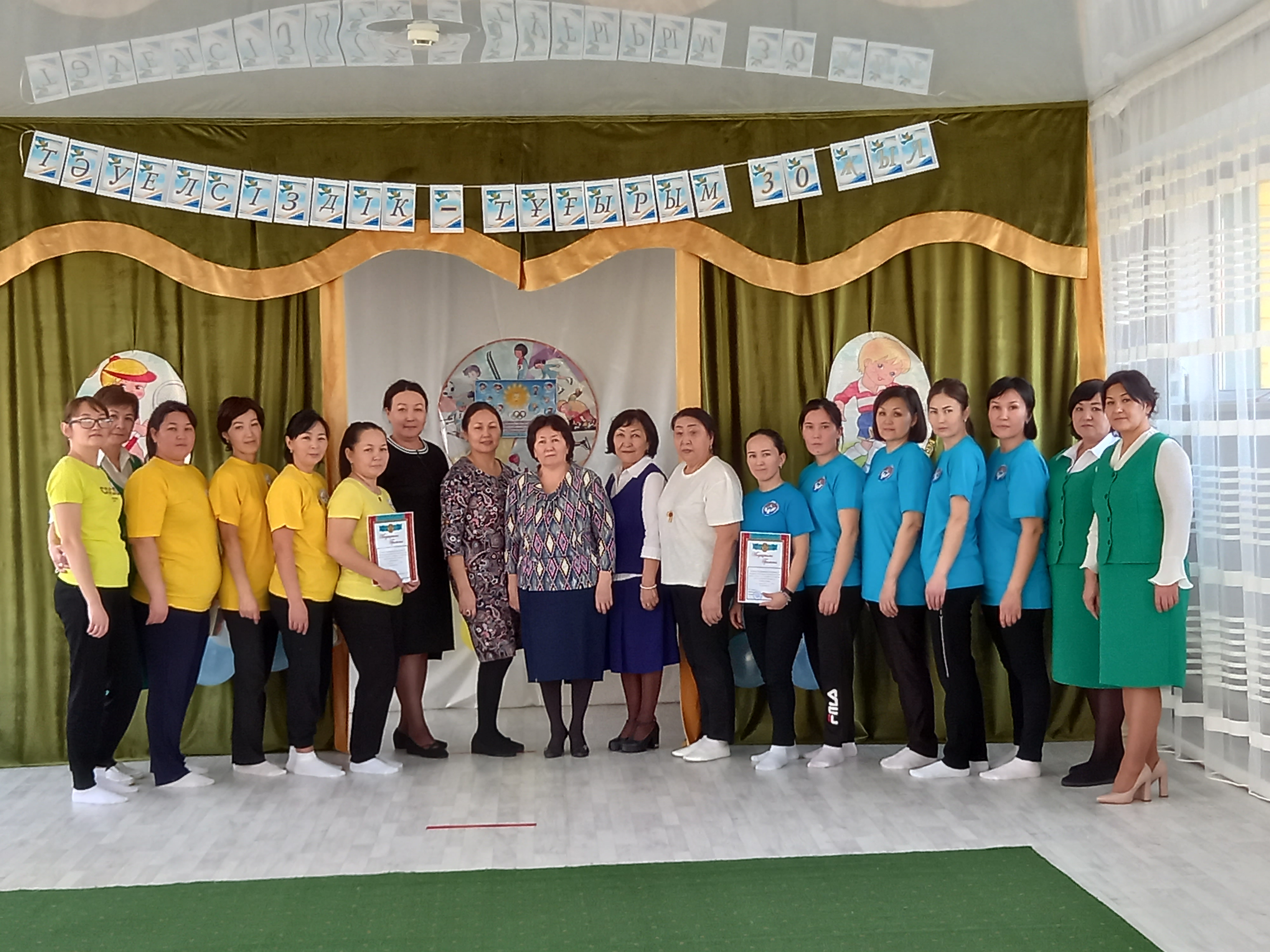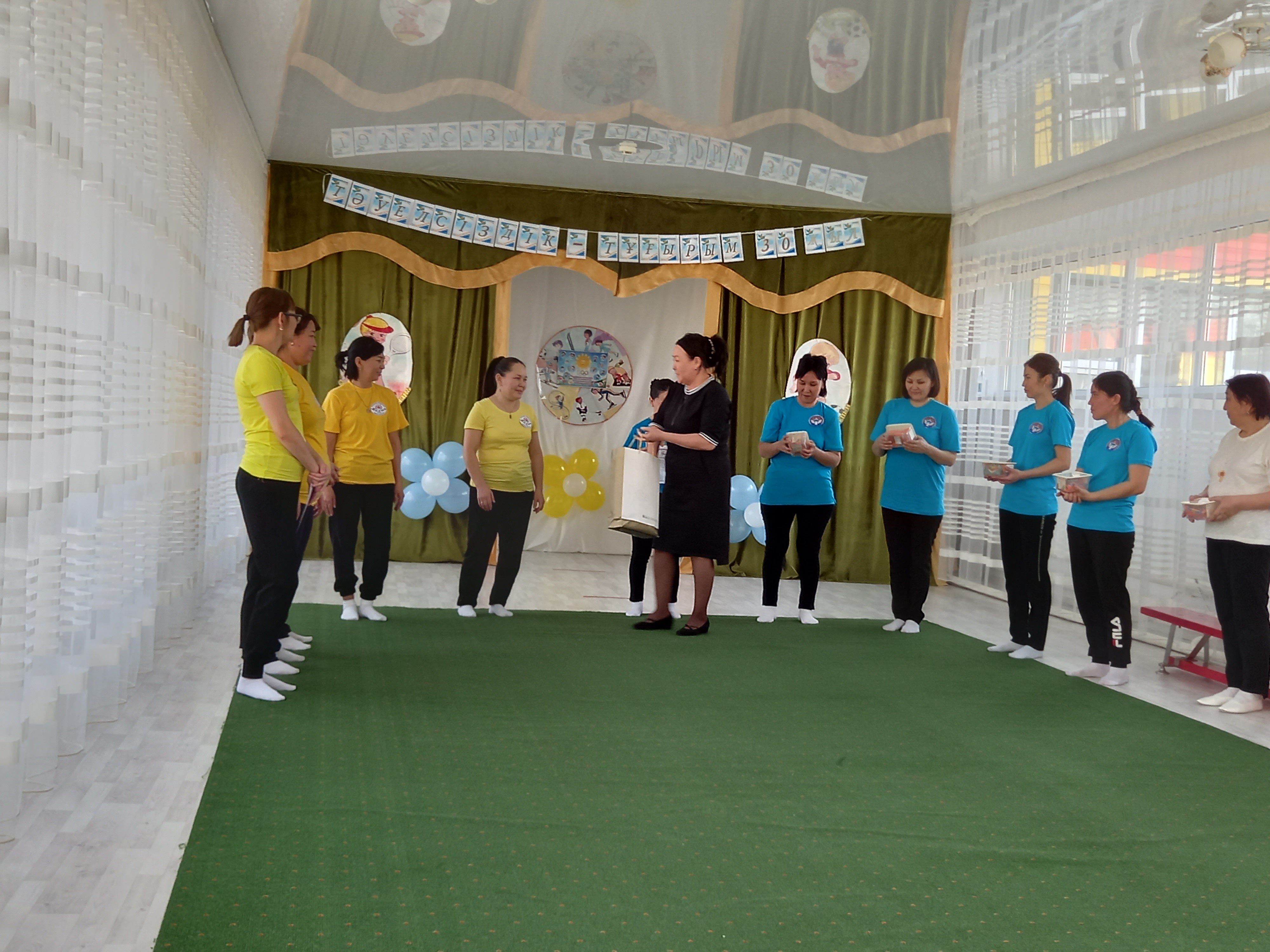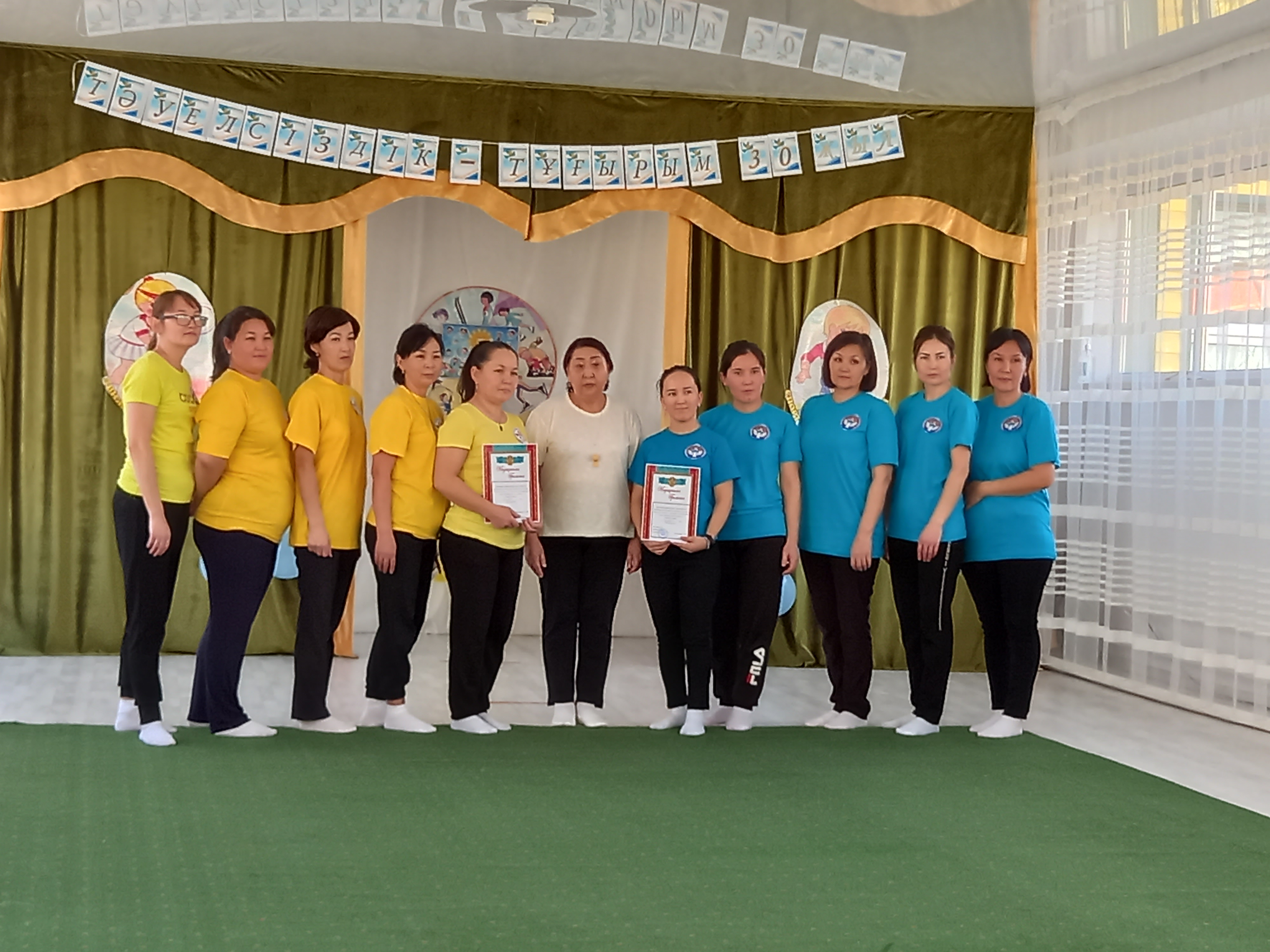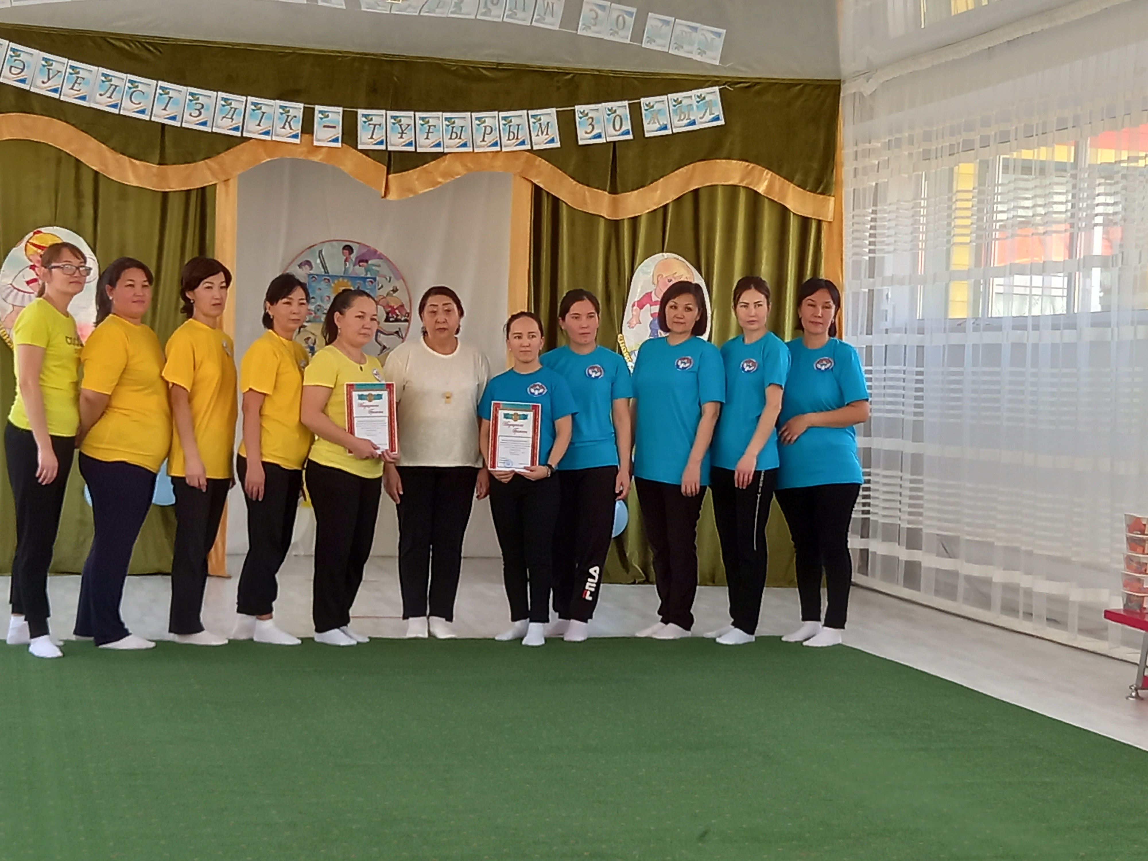 Дене шынықтыру нұсқаушысы А.К.Куанышева қазан айында «Қош келдің алтын күз!» спорттық мереке, қараша айында «Денсаулық мерекесі» - эстафеталық ойындар, қаңтар айында«Толағай» - спорттық жарыс ойындар (ата-анамен), ақпан айында«Спорт өмір көркі» - ортаңғы топтар сарасындағы спорттық жарыс ойындары, сәуір айында«Батырлар сайысы» - спорттық сайыс, мамыр айында«Денсаулық поездында саяхат» - спорттық ойын - сауық атты спорттық ойын сауығын өткізіп, ата-аналар мен балалар белсене қатысып, әкімшілік атынан марапатталды. Оқу жылының соңында медбике Есенаманова С.К. «Жаз кезіндегі сауықтыру-шынықтыру жұмыстары» тақырыбында кеңес оқып, балаларға жаз мезгілінде көп көңіл бөлу керектігін түсіндірді.