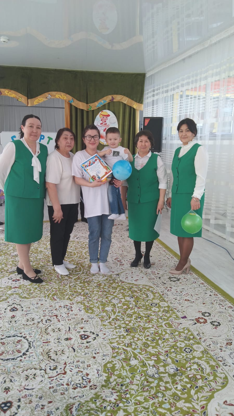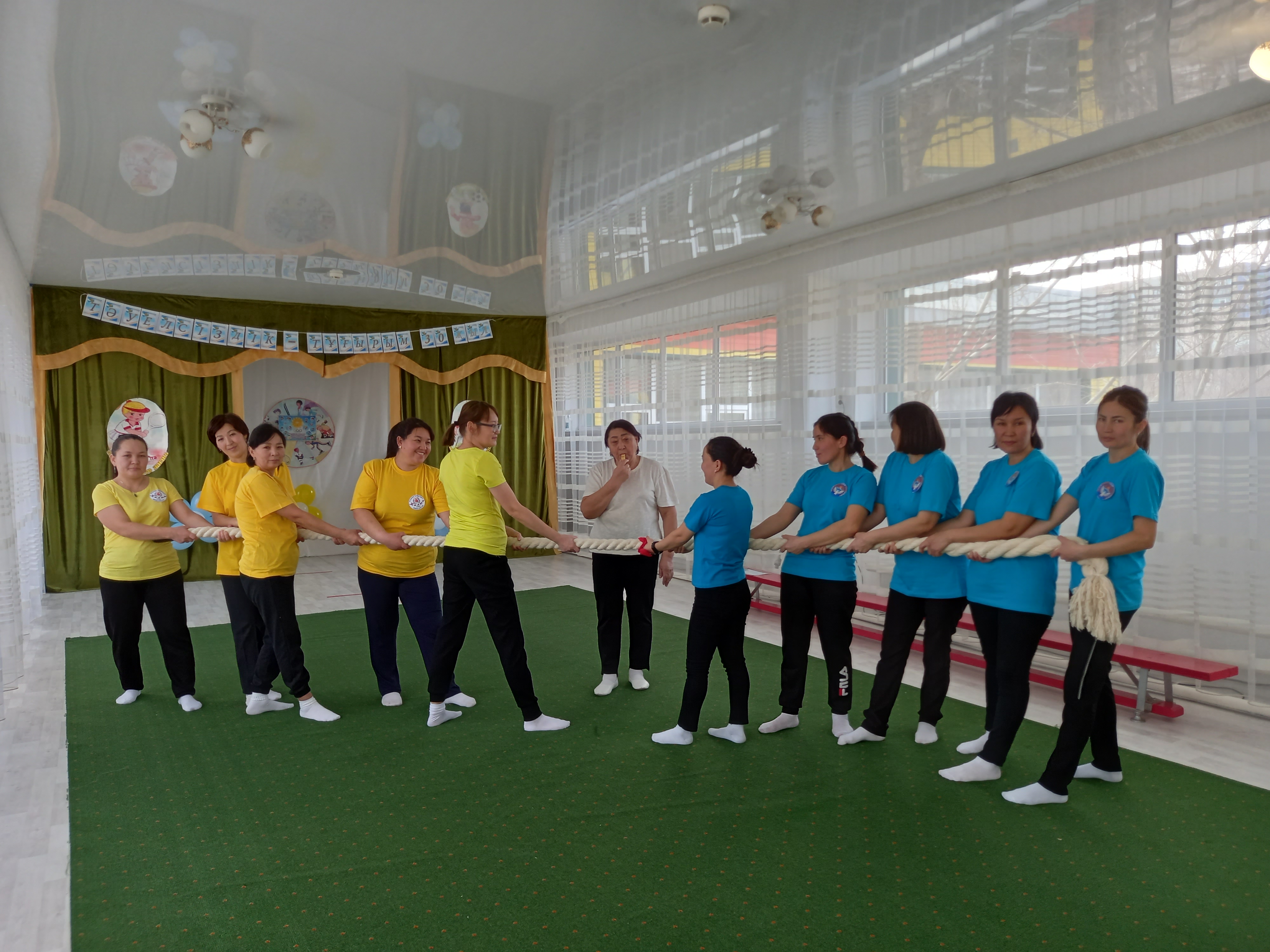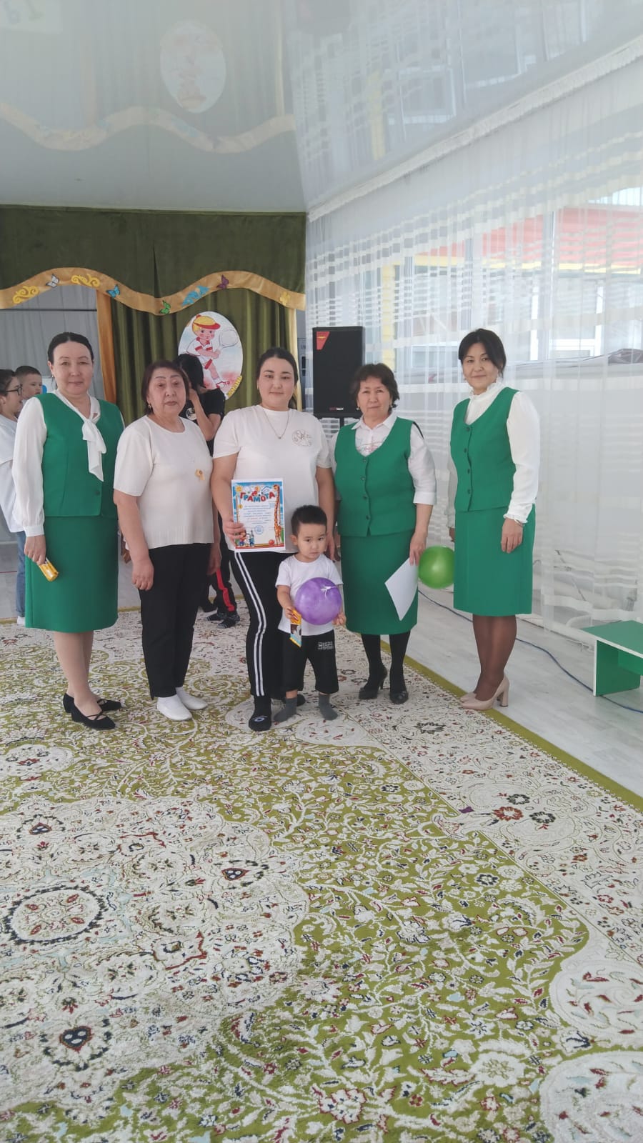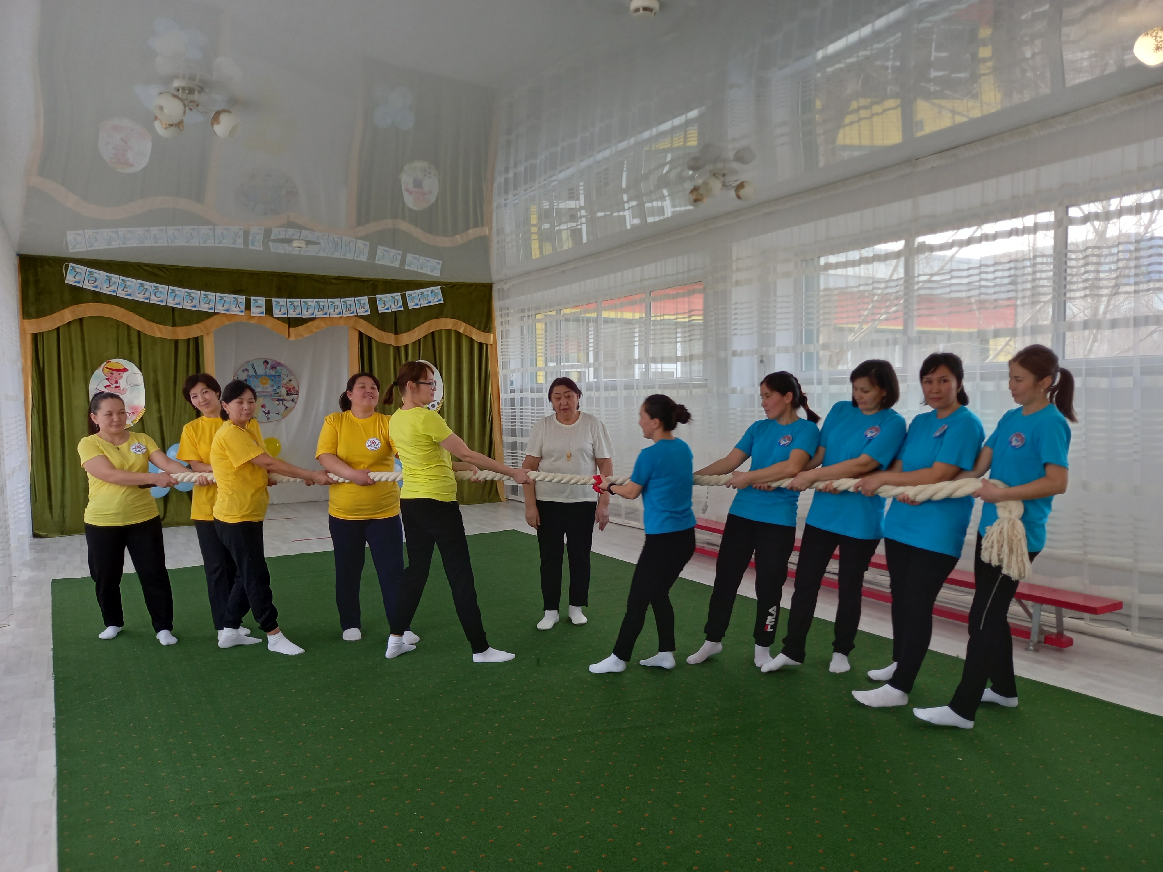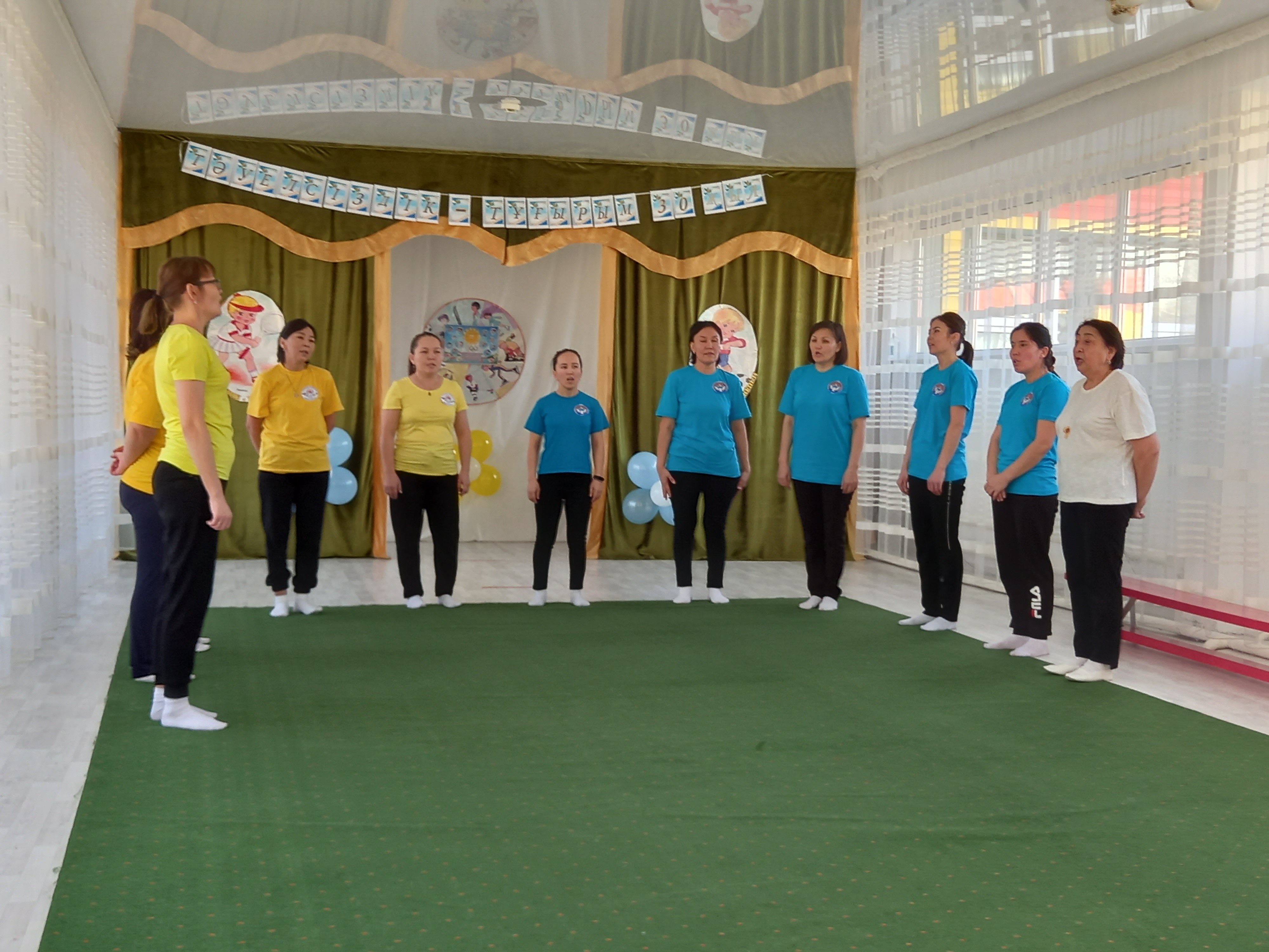 Дене шынықтыру нұсқаушысы А.К.Куанышева қазан айында «Қош келдің алтын күз!» спорттық мереке, қараша айында «Денсаулық мерекесі» - эстафеталық ойындар, қаңтар айында«Толағай» - спорттық жарыс ойындар (ата-анамен), ақпан айында«Спорт өмір көркі» - ортаңғы топтар сарасындағы спорттық жарыс ойындары, сәуір айында«Батырлар сайысы» - спорттық сайыс, мамыр айында«Денсаулық поездында саяхат» - спорттық ойын - сауық атты спорттық ойын сауығын өткізіп, ата-аналар мен балалар белсене қатысып, әкімшілік атынан марапатталды. Оқу жылының соңында медбике Есенаманова С.К. «Жаз кезіндегі сауықтыру-шынықтыру жұмыстары» тақырыбында кеңес оқып, балаларға жаз мезгілінде көп көңіл бөлу керектігін түсіндірді.