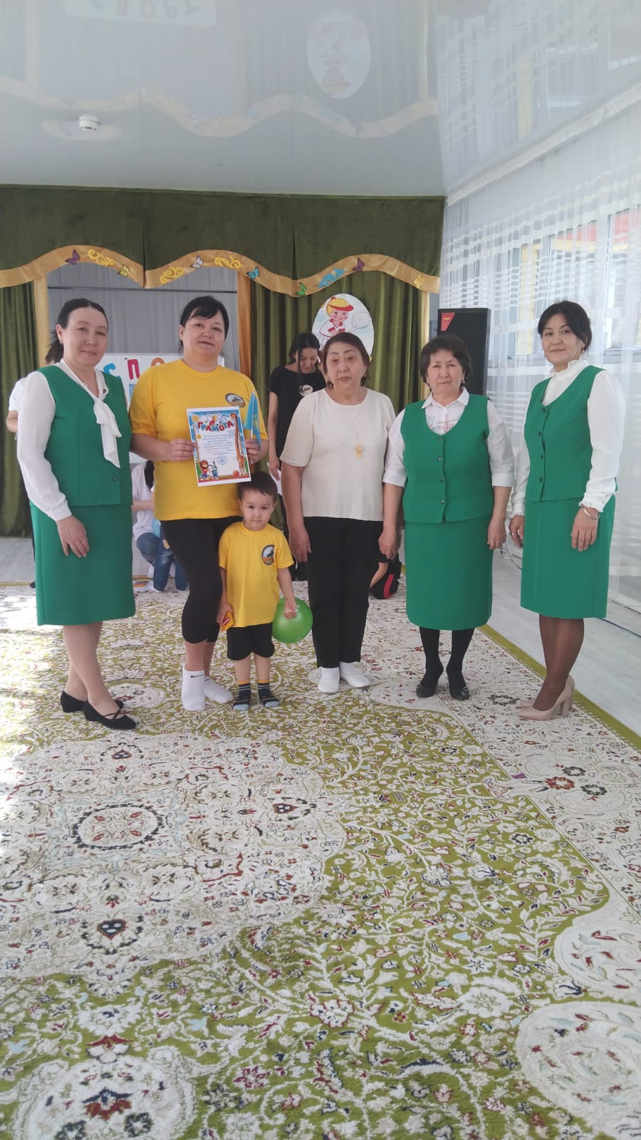 «Төрлет құтты жаңа жыл», «Жасыл шырша жанында», «Кел, жаңа жыл, жаңа жыл!», «Жаңа жыл, жаңа нұр», «Төрлет, төрлет жаңа жыл», наурыз айында «Мерекеңмен анашым», «Аяулы ақ мамам», «Айналайын ақ мамам», «Біз ананың гүліміз», «Құттықтаймын ана мерекеңізбен!», «Анамызды аялайық», «Наурыз мерекесі», «Қош келдің Наурыз!», «Нұр себеле Ұлыстың Ұлы күні», «Армысың көктем Наурыз», «Наурыз тойын тойлайық», «Наурыз жыл басы», «Батырлар сайысы» - спорттық сайыс, «Бірлігіміз жарасқан», «Тату доспыз бәріміз», «9 мамыр Жеңіс күні!», «Сөнбейді жеңіс шырағы», «Жеңіс күні жадымда», «Қош бол, балабақшам!», «Денсаулық поездында саяхат» - спорттық ойын – сауық тақырыптары бойынша мерекелік ертеңгіліктер мен спорттық жарыс ойындары өткізілді. 9 мамыр Ұлы Жеңіс қарсаңында Ұлы Отан соғысының батыр қызы Ә.Молдағұлованың мұражайына балалармен саяхатқа барып, батыр қыздың өмірбаянымен, ерлігімен танысып, өте үлкен әсер алды.