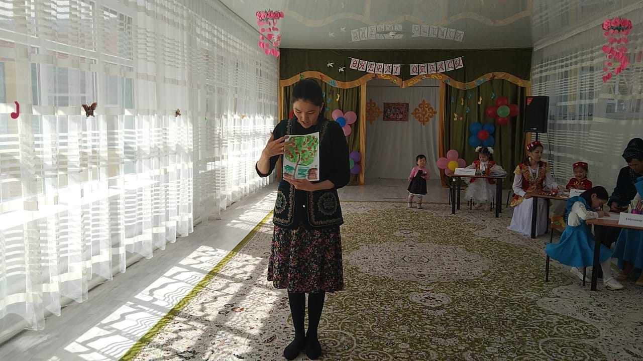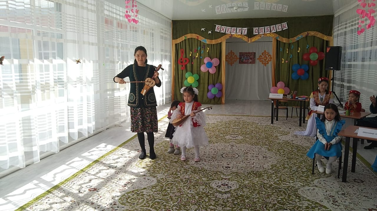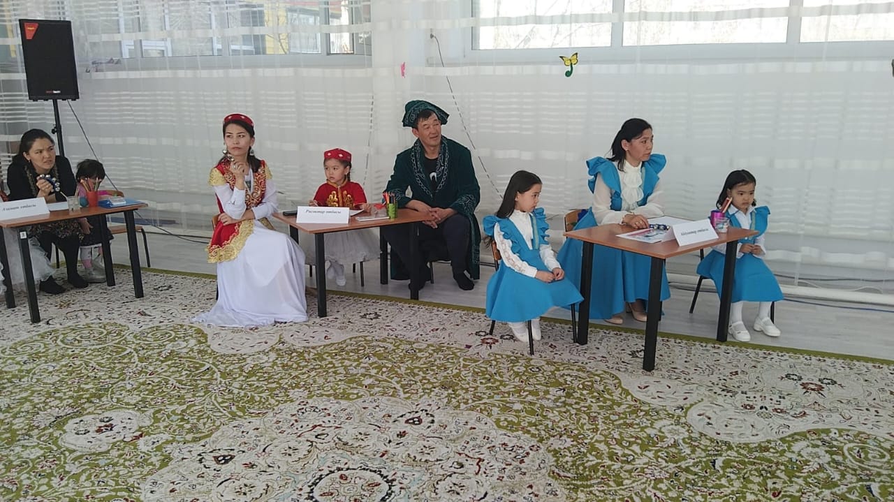 Жалпы ата-аналар жиналысында «Адамгершілік-рухани тәрбие арқылы шығармашылықты дамыту жолдары», «Ұлттық саз аспаптары-халқымыздың мұрасы»- тақырыптарында топтарда ата-аналарға кеңестер оқылып баяндамалар жасалынып, ата-аналарға мәліметтер қызықты түрде беріліп, әрбір ата-ана өз ойларын талқылады. «Мың бір мақал» - іскерлік ойын