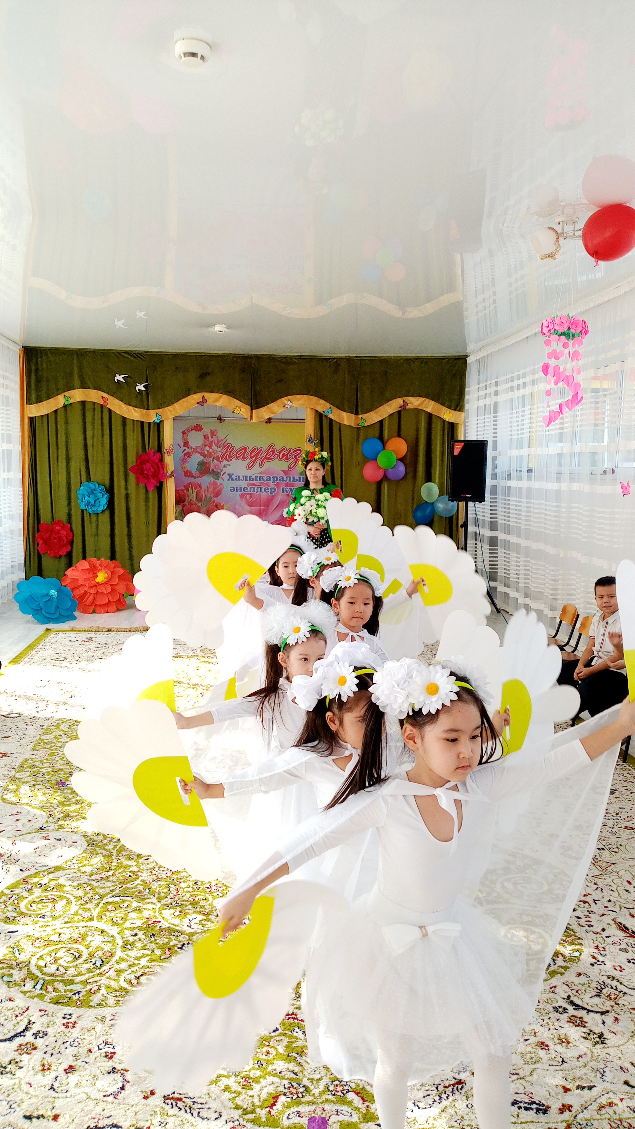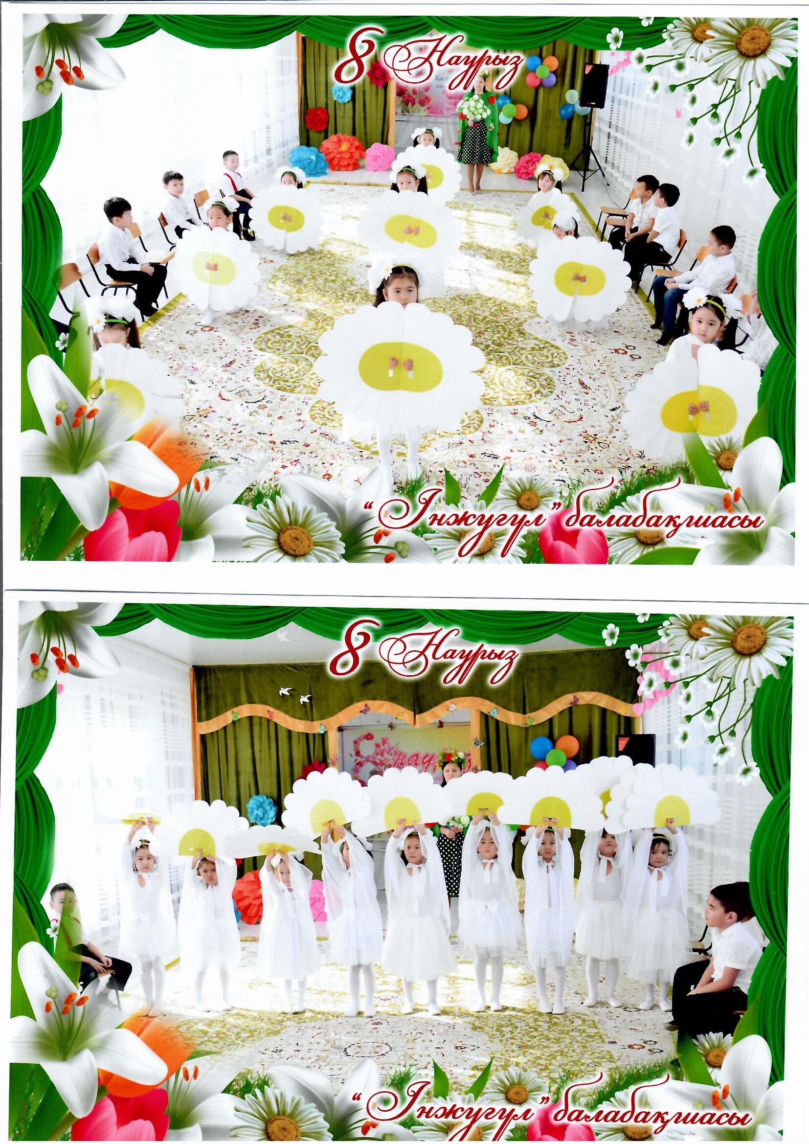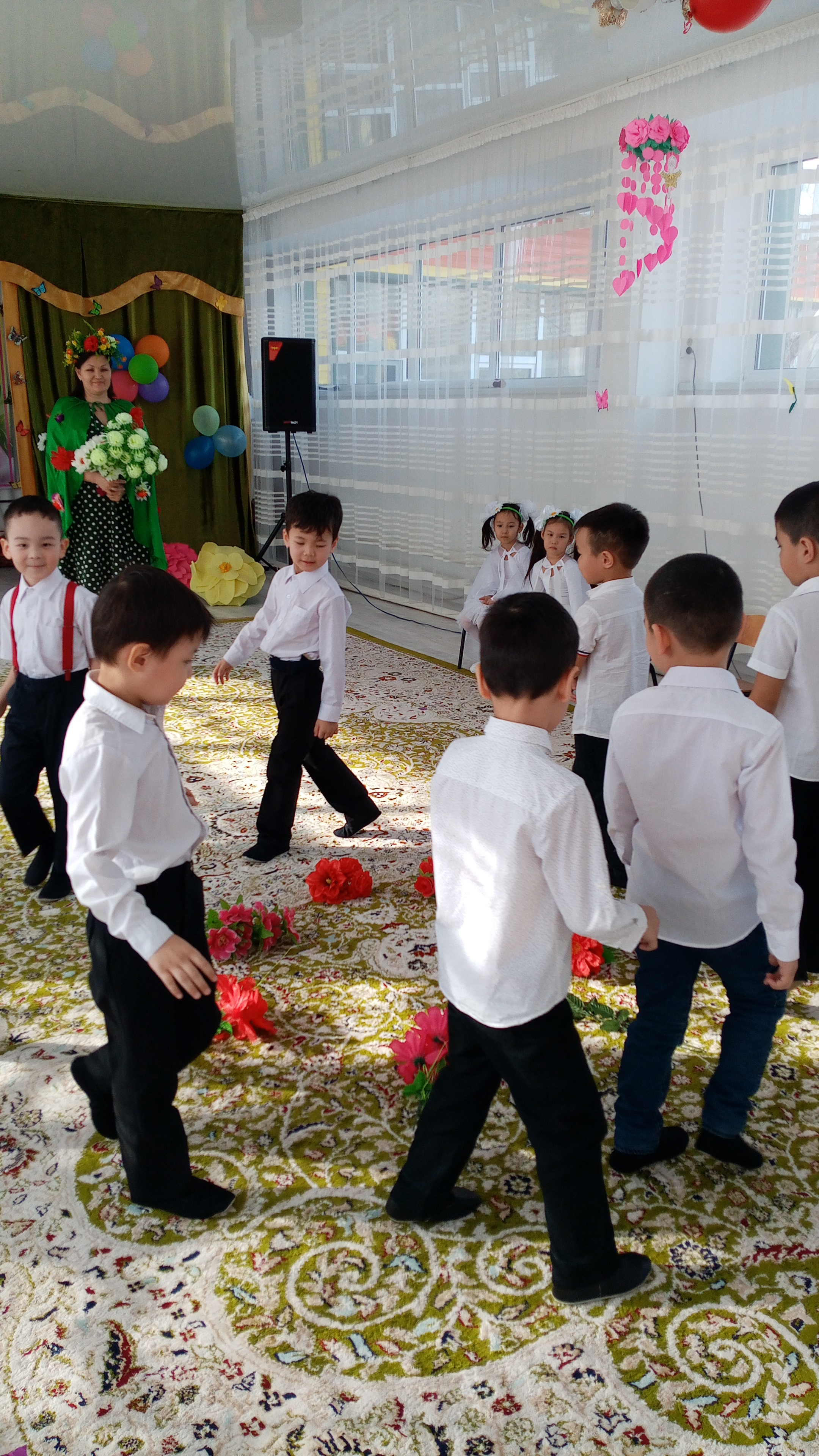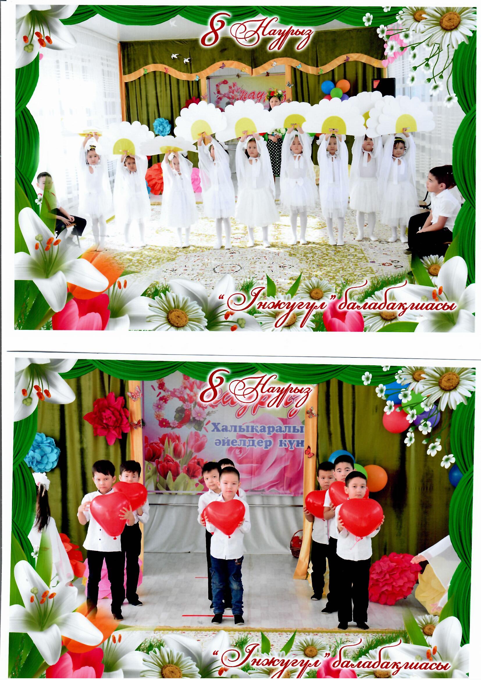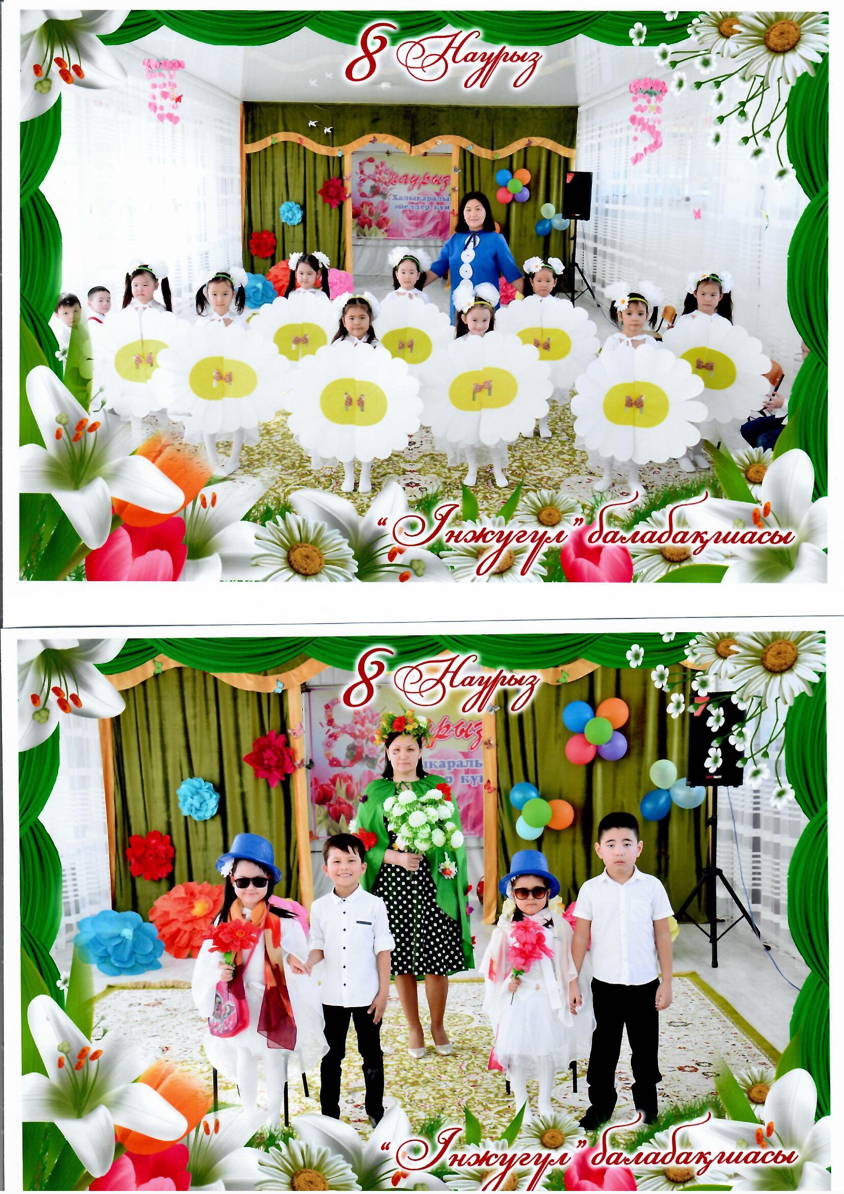 «Төрлет құтты жаңа жыл», «Жасыл шырша жанында», «Кел, жаңа жыл, жаңа жыл!», «Жаңа жыл, жаңа нұр», «Төрлет, төрлет жаңа жыл», наурыз айында «Мерекеңмен анашым», «Аяулы ақ мамам», «Айналайын ақ мамам», «Біз ананың гүліміз», «Құттықтаймын ана мерекеңізбен!», «Анамызды аялайық», «Наурыз мерекесі», «Қош келдің Наурыз!», «Нұр себеле Ұлыстың Ұлы күні», «Армысың көктем Наурыз», «Наурыз тойын тойлайық», «Наурыз жыл басы», «Батырлар сайысы» - спорттық сайыс, «Бірлігіміз жарасқан», «Тату доспыз бәріміз», «9 мамыр Жеңіс күні!», «Сөнбейді жеңіс шырағы», «Жеңіс күні жадымда», «Қош бол, балабақшам!», «Денсаулық поездында саяхат» - спорттық ойын – сауық тақырыптары бойынша мерекелік ертеңгіліктер мен спорттық жарыс ойындары өткізілді. 9 мамыр Ұлы Жеңіс қарсаңында Ұлы Отан соғысының батыр қызы Ә.Молдағұлованың мұражайына балалармен саяхатқа барып, батыр қыздың өмірбаянымен, ерлігімен танысып, өте үлкен әсер алды.