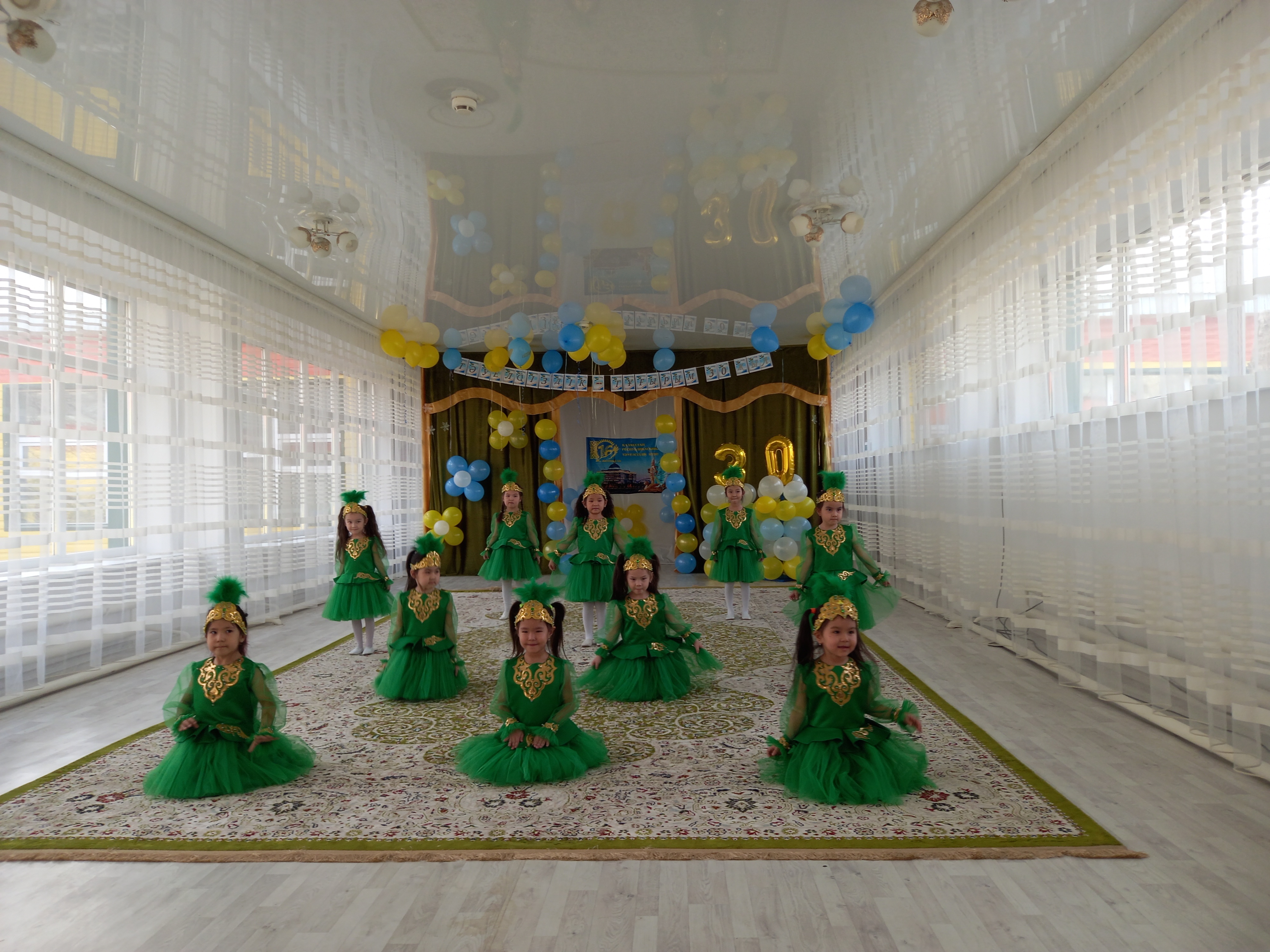 Маусым айында топтарда балаларға Қазақстан Республикасының Мемлекеттік рәміздерімен таныстыру, Туды, Елтаңбаны және Гимнді бір - бірінен ажырата білуге үйрету, балаларға рәміздерді құрметтеуге, қастерлеуге, рәміздерді бәрінен биік ұстауға, рәміздердің әр элементтерін, бөлшектерінің атауларын жатқа білуге тәрбиелеу мақсатында «Мемлекеттік рәміздер» тақырыбында ашық қаралым өткізілді. Шілде айында «Тәуелсіздіктің бас қаласы – Астана!» - мерекелік ертеңгілік, тамыз айында «Тәуелсіздік нышандары» - қызметкерлермен тақырыптық тәрбие сағаты