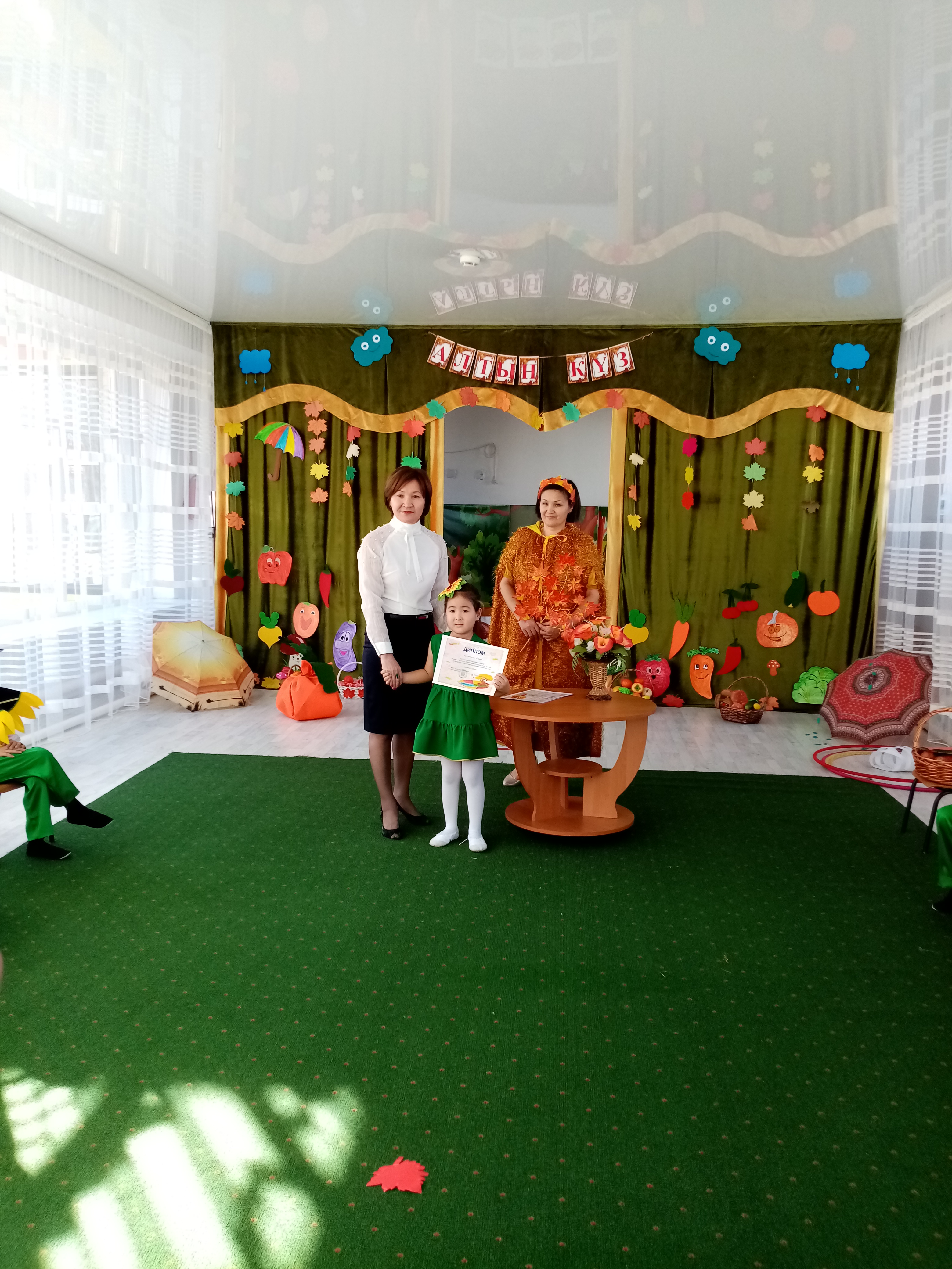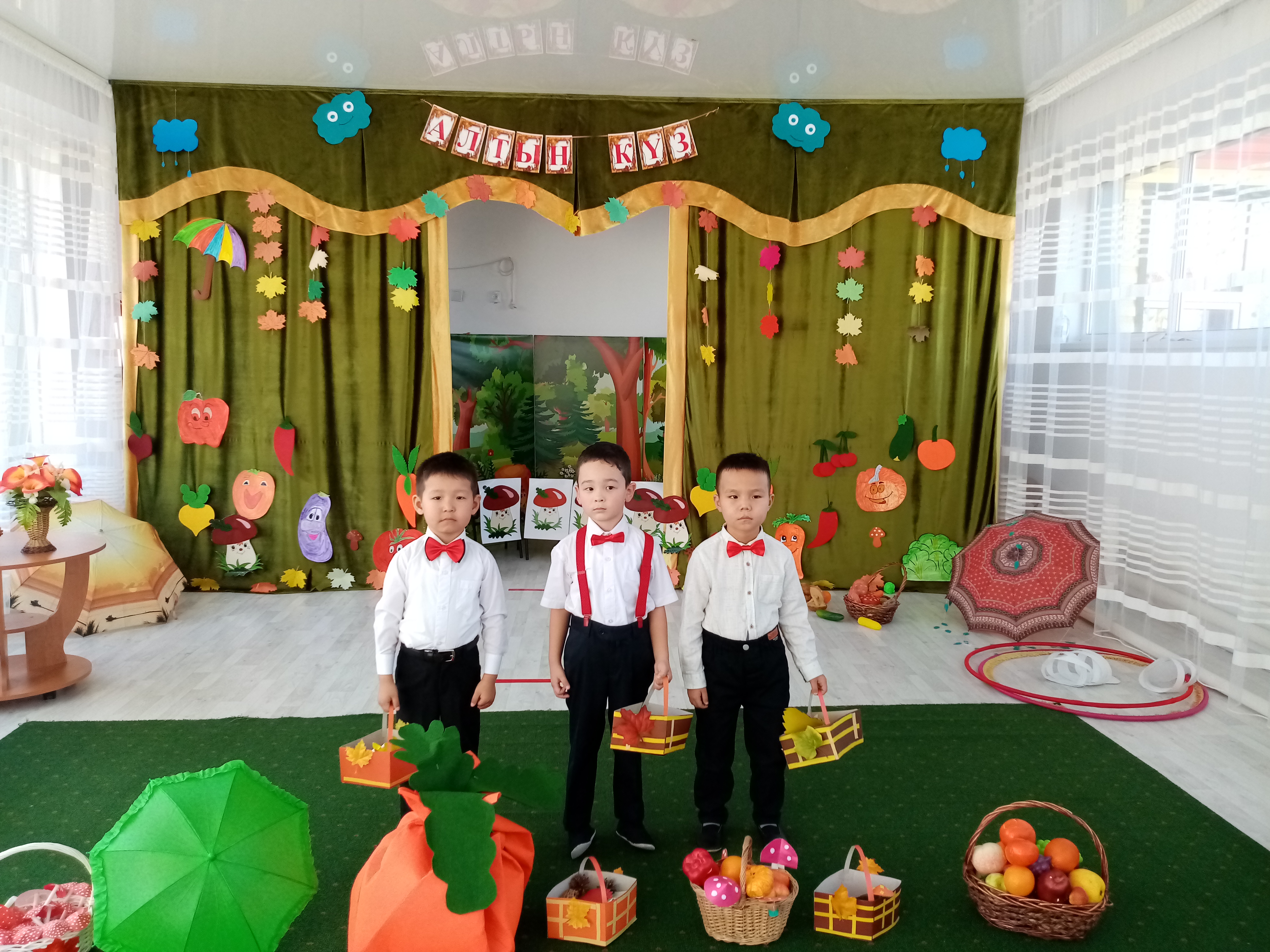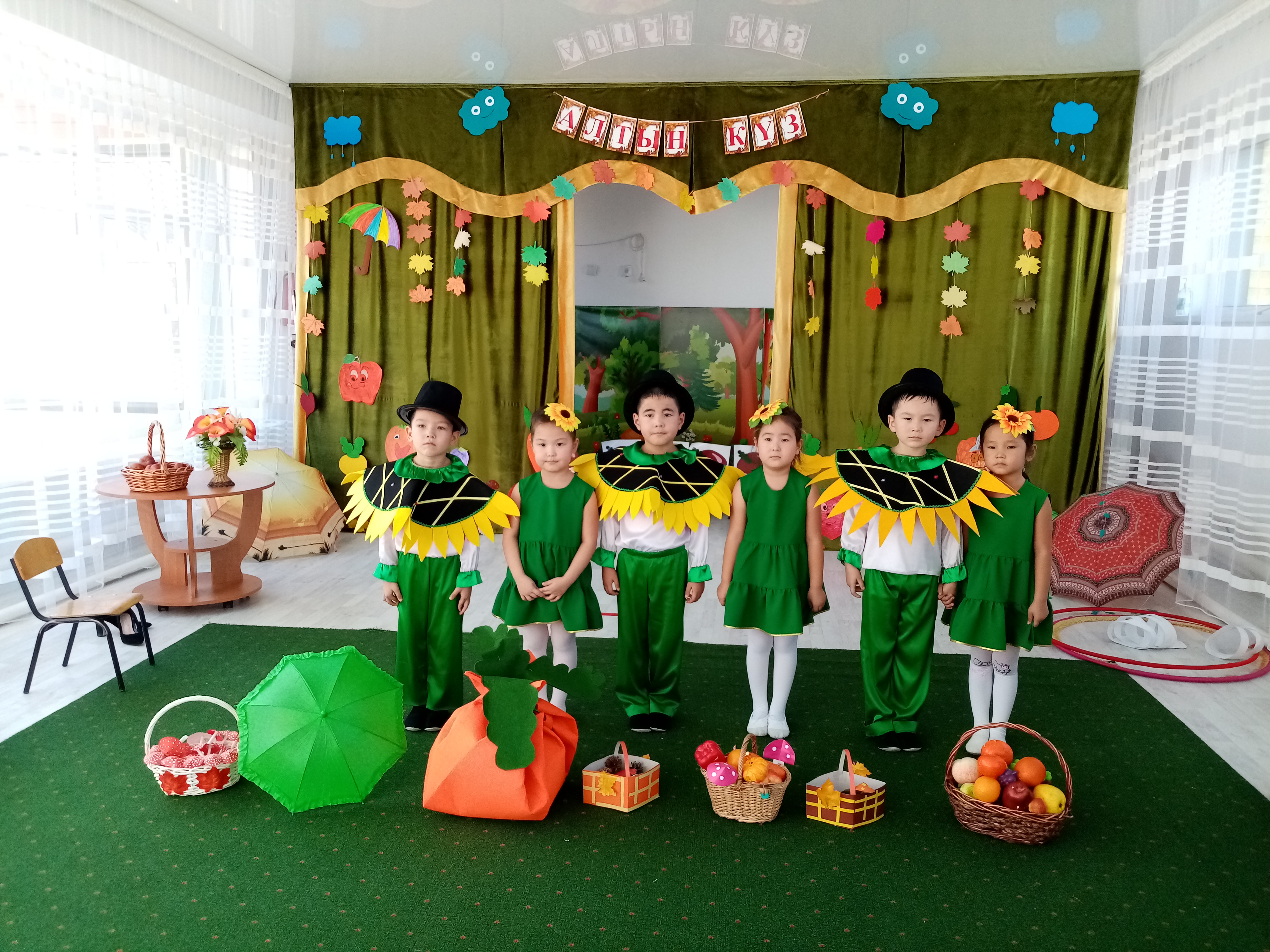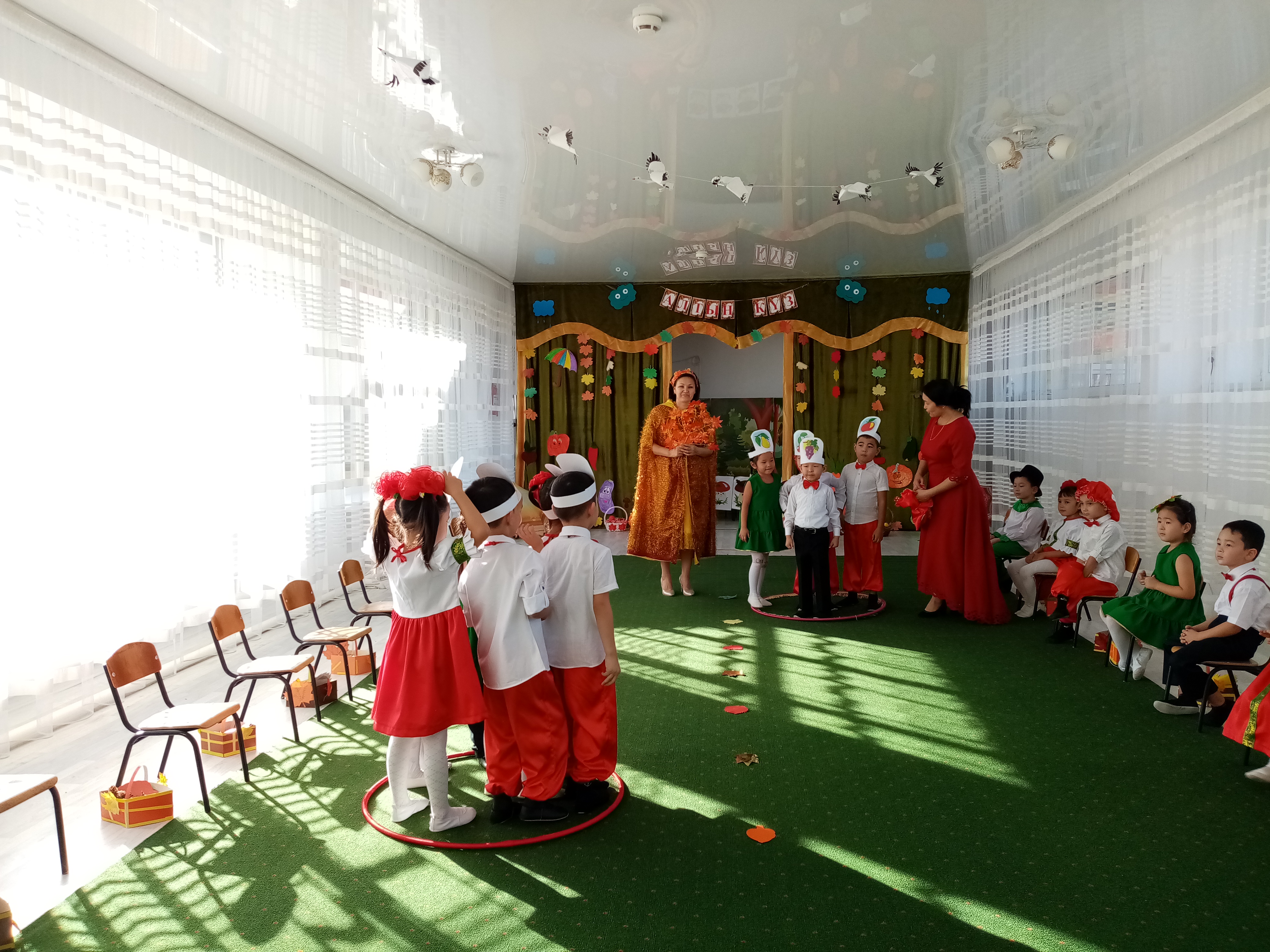 Жоспар бойынша барлық топтарда қыркүйек айында «Білім күні мерекесі», «Тіл тірегіміз, соғып тұрған жүрегіміз», қазан айында жыл бойына «Алтын күз», «Күз келді алақай», «Берекелі күз келді!», «Аяулы күз, алтын күз»